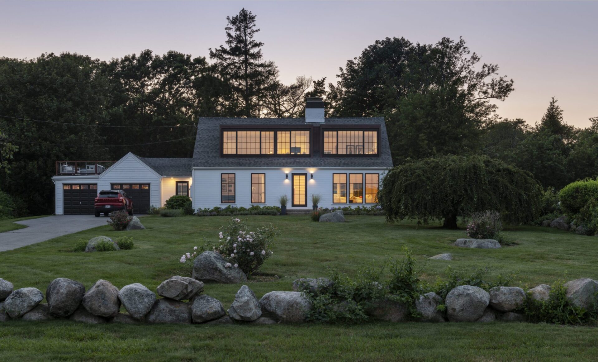 Our architectural strategy was to keep as much of the existing structure as possible, to open up the ground floor living spaces for a more contemporary spatial flow that would be as comfortable for two as for twenty, and to open up the cramped upstairs by creating two new room-sized copper-clad dormers that would take advantage of the Thacher Island views.